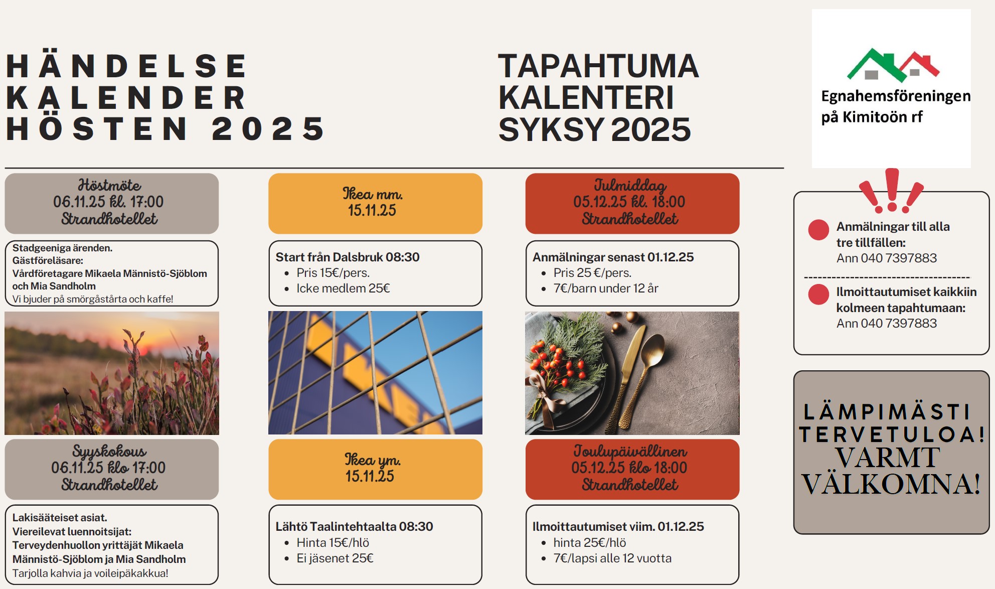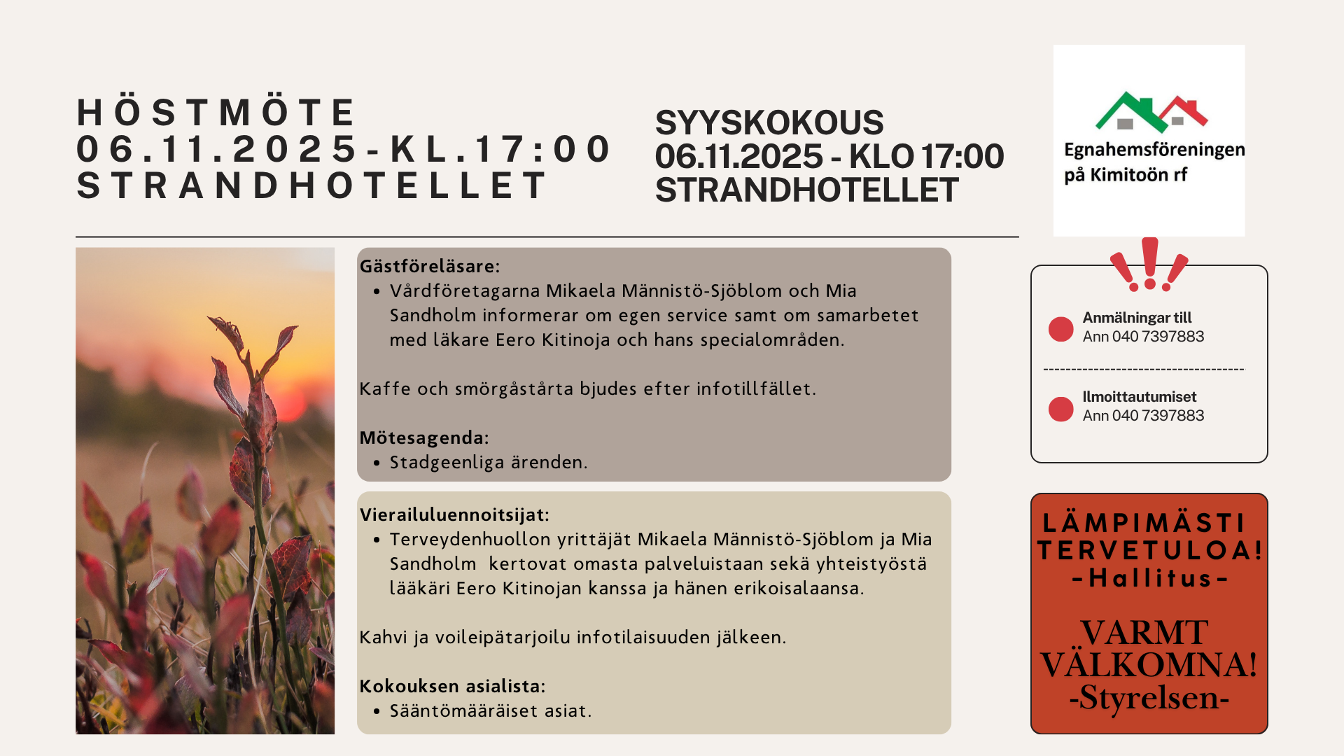 OBS! Höstmötet ändrat från 23.10 till 6.11
